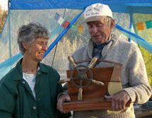 The occasion also marked Jim and Janice Thayer's 50th Wedding anniversary. Dewitt felt a trophy was in order so he made one up - it is a beauty. Lots of good food, drink, and discussion in attendance as well. We took a moon light row in the Nina to disperse part of Jack Hicks' ashes. He was very fond of the Starvation meets. |