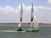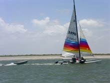 Two Hobie 18's passed us that afternoon - this one manned by Bob Johnson Jr. and Bob Johnson III. They were even towing a kayak!