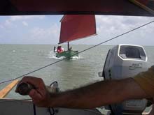 Most everyone got an early start Monday morning. From Port Mansfield we were sailing about 40 miles to a spot on the ICW called Happ's Cut. Here is Bobby Chilek leaving Port M under power in his Bolger Bobcat.