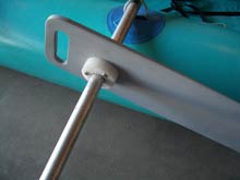 | The mast step was carved from a solid block PVC, cemented and screwed to a PVC plate that was in turn cemented directly to the floor of the kayak. |