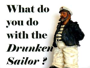 “What did you do with the Drunken Sailor “ I might well ask of a Barbadian sort of `uncle’ of mine were he still alive? I well remember Tommy having a really lovely and well sculpted clay ornament of an inebriated looking sailor about sixteen or seventeen inches high. “That’s Errol from Oistins (a fishing village)” he told me when I last stayed with him. .It was just an item and not part of a collection, but it was probably snapped up for a just a few dollars when his `stuff’ was auctioned and who knows, it may not have found a good owner and might well have now suffered breakage and been chucked out. And what about my Jasper, smaller in size and gifted to me by another model yacht sailor, John Butterwith in England. Where will he go I wonder, when someone has to dispose of all the `stuff’ that I will leave to be disposed of when I have crossed the bar? Stick him in the box with me if nobody wants him!