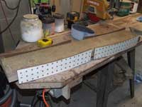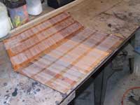 After glue has dried, sand concave side of blanks smooth, then fiberglass. |