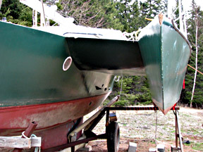 I subscribe to the philosophy that sailors should do all they readily can to prepare for bad conditions, even if the likelihood of needing the preparation is quite small. I should never have read Heavy Weather Sailing and similar books because I now visualize situations that are very unlikely for a cautious coastal sailor. In particular, the likelihood of a huge wave breaking over the stern of my 26’ Norman Cross Trimaran as I day-sail in Northumberland Strait is just about nil. Still, I want to make the step into the cabin high enough to reduce the risk of the water going below, and have the water that fills the cockpit drain out quickly enough to let the boat rise over the next breaking wave.