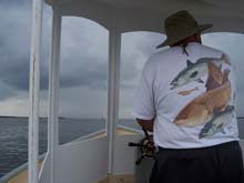I returned to the tug, fired up the Johnson and cruised back into Estero Bay to enjoy the warm sea breeze that kicked up a small chop. The tug rolled over and through the chop like a champ. A glance to the east gave reason for concern. A black wall of cloud had formed inland and the cumulous tops were growing higher by the minute. This time of year the sea breeze can fuel powerful thunderstorms that often work their way to the coast. If conditions are right, these squalls can be as ferocious as a hurricane with lightning, high gusts, hail and lots of evil things. I did not want to wrestle with one of those babies today.