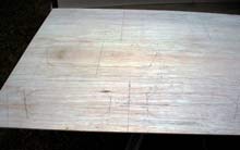 As an architect, Olivier had access to a large CAD printer and so printed full size patterns of the sides. Those had to be cut with scissors and then carefully laid out and scribed on the plywood. We’’‘re not sure that saved any time over the more traditional laying out and drawing the lines with a batten, but it proved extremely accurate. |