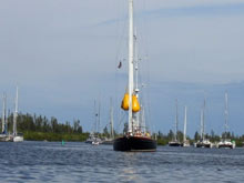 So you want to travel the ICW with a mast higher than 65 feet! This boat came in last night at Vero Beach.