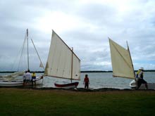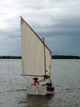 Hi Chuck, have watched your progress through the Antipodes, and saw you met with Ross L. (who designed this bigger sail, as you have previously acknowledged) so you came to very close to where a bunch of us who sail little wooden boats at Caloundra. (Sherpa, Pooduck, Pathfinder, Bolger Catboat, and Phoenix III, (by Ross). These pics I thought you might enjoy, as they show a grandpa (myself), sailing with his G’son on quite a windy day (later). And a great pic of my daughter about to hit the beach, on her first sail.