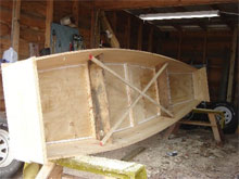 This is the first boat I have built. I got the plans, if you can call them that, from a book about ozark rivers. The book was "Rivers To Run" by Larry Dablemont, a Missori Ozarks  writer. The boat is yellow pine and marine ply for the bottom. I shall be using it on the lower buffalo river in arkansas and surrounding creeks. I don't plan to motorize it, mainly a downriver float boat....