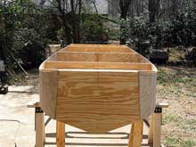 Here are a couple more pics of the building stage. The next one I make I will epoxy over it and leave it natural wood colour. The book called for good oil paint. The joints are all sealed with butyl caulk and after priming I put 4 coats of oil based floor and porch paint on it.