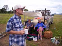 Here are two photos – one showing a fine gentleman in profile, and the other showing three boats during a mid-week mini-messabout on our local dam. The boats are a Joel White Pooduck Skiff, a Bolger Bobcat (Instant Catboat), and my beautiful 52 year-old International Finn which you saw under a tarp at my place. She was built for the 1956 Olympic Games and (as you can see) still sails like a thoroughbred. I’ve got her in my favourite position – to windward and overtaking!