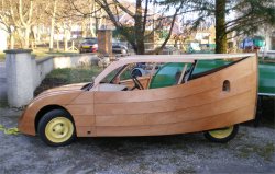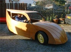 For those who want to apply their boat building skills to a new project ....maybe a lapstreak car ....? Fellow named Topher Dawson built this 3 wheeler on a CV-2 chassis .....:^)
