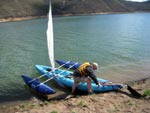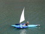 I have sailed it in 25kts+ & it is so stable that all it wants to do is bury the leeward hull & take on water. Being unsinkable, all you do is keep a little pressure in the sail to keep the boat just moving while bailing it out. Very safe & fun boat for kids!...big or little!
