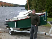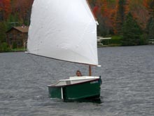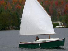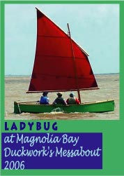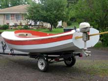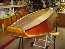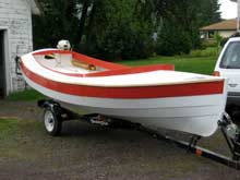 The hull is 5.5 mm Luan, mahogany for the rails and 1/2" ply transoms. Got a quart of exterior house paint from the unclaimed discount rack at HD for $3.00. Used marine polyurethane for the brightwork. Thanks Larry for submitting your article and instructions.