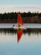 We launched it on Emerald Lake, a small lake about 90 minutes north and a bit west of Saskatoon, Saskatchewan. When I was growing up we had a cabin on this lake and I had a wonderful time spending my summers there. My Dad had built a small fishing/rowing boat he called UGO IGO (you go, I go) and I rowed that boat all over the lake with our black lab as co-pilot. I have named this boat "Ugo Igo Too" in memory of my Dad as an homage and to thank him for the boat he built that I had so much fun in when I was a boy.