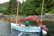 Surfbird. I didn't sail her that day as it was quite windy outside the breakwater. I wanted a relatively light wind day to sort out the sails and rig. I did row around a little with Adryan as crew. Enclosed is a photo.
