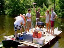 My son and a friend each had a canoe. They bought some plywood and 2x4s and came up with what they call "The Raft".