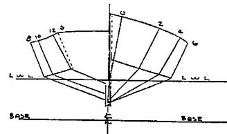a transverse line, the deadrise begins. The rise of the rabbet back up to the waterline has to be