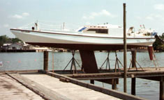 The original cabin and keel, long and lean. Not much underwater to slow her down. |