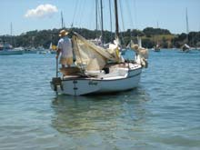 It would not be a small boat event without Philip C Bolgers boats This oneis the original Windfola designed and built for Aucklander Victor Hopwood.