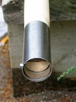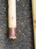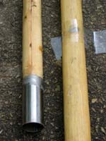 At the business end you need something to keep the wood from splitting or fraying. Most folks use a piece of copper pipe. You can pin it in place with a nail, but you don’t actually need to because once the end starts fraying, the pipe will be locked more or less in place. In a pinch, I’m pretty sure you could wrap the end tightly with wire using a Clamp-Tite tool, which would obviate the need to file the end to fit your pipe. Just don’t get carried away and use a big chunk of steel pipe or you’ll make your pole tip-heavy and unwieldy. You might even sink the pole.