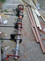 I dug through my scrap pile until I found a combination that would let me rip four 6-foot 1x2s (with reasonably small knots). These strips were then planed smooth on one surface and laminated.