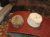 So what do we do about the float? We can’t just order a part for a 1947 motor, so we have to make one. This is easily cut out of cork from the hardware store. I use a fine bandsaw blade or sharp knife to get it close, then sandpaper.