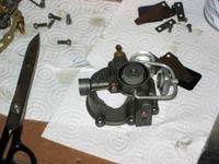 That brings us to the second problem—how to securely attach drains to a carburetor casting. These castings are often only 1/8” thick or so, which makes it impossible to tap a hole to screw in a hose barb. Gluing to the surface does not seem especially reliable unless you can manage a really large gluing surface, which isn’t possible on any carb I’ve ever seen. I went for more security and shaped a piece to fit the float bowl, fastened from the inside with tiny countersunk screws, and glued it with JBWeld. This might be overkill, but I don’t want the bottom falling out of my carb when it counts.