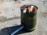 I like to start the fire with wood instead of resorting to lighter fluid. This is a good use for plane shavings and thin scrap. Try a touch of blast if you get a lot of smoke.