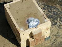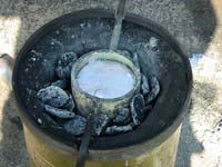 Here’s the crucible waiting its turn. Remember to be careful about setting it on concrete when it’s hot. If you spill molten metal on concrete, it can explode. (I said that already and I’ll say it again. It bears repeating.) I have fire brick to set the hot crucible on.