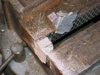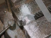 The sediment bowl casting needs hardly any filing because of the long “nose” I added to the pattern. This let me cut the gate off far from the casting itself. I could have done the same with the bowl drain casting if I had made it a bit deeper, but I didn’t. So I had to cut though the gate. Fortunately aluminum cuts relatively easily.