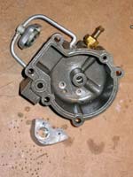 Finally we test fit, screwing the new piece to the bottom of the float bowl and adding a hose barb. (Hopefully you can still turn the hose barb!) Once this is done, we take it all apart and clean the mating surfaces with acetone, then JBWeld and screw it together. I fillet the edges with JBWeld too. With the addition of the hose barbs, we’re done! Here’s the carb with both parts installed.