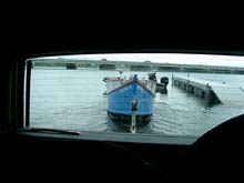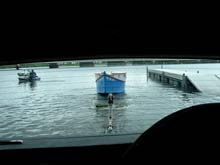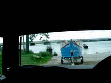 OK, that one is a worst-case scenario. The water levels were high, so we were stuck using the top of the ramp, which has less slope. But here’s the same ramp, trailer and same model Jeep with more normal water levels. Even here we’re dragging the boat off because it’s not quite floating yet.