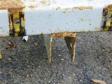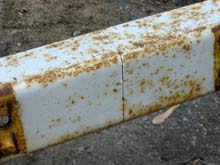 In any case you’ll want a respirator or at least a powerful fan, since lead content is probable in such enamel. Another approach would be chemical paint stripper, which is handy in corners where you can’t fit a wheel in. Either way it is better to get it all removed on both sides wherever welding heat will later be burning the paint. I missed a few spots, and I can tell you it was not pleasant or healthy. (I forgot about that “both sides” part with the paint removal.)