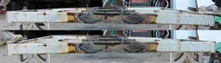 If you are starting from scratch it is a good idea to make a plan drawing as well. In my case this was unnecessary, since I was only adding joints near the middle in a rather straightforward way. But you will need to measure the maximum bottom width of the boat to figure out how wide the frame should be. A few extra inches isn’t a bad thing, particularly on a long trailer where you will need trusses to stiffen the sides. Either way, try to stick with standard widths. This makes it easier to buy an axle if you need to. In my case the frame will be 60” wide, which is a standard width for axles (58” between spring perches, on center). In my case, this means lengthening three transverse channels and one axle, each by a foot. But as always, there’s more.