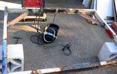 Notice how I kept things aligned. I slipped spacers under the joints where necessary to keep everything in the same plane. I was assuming that the concrete slab was flat, though I probably should have checked it with string before making that assumption. Fortunately it turned out to be close enough.