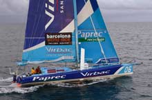 After 93 days at sea and having covered the 28,329 000 mile journey Frenchman Jean Pierre Dick and Irishman Damien Foxall crossed the finishing line at Barcelona on February 11th last year aboard Paprec – Virbac 2 (top left) to win the first edition non-stop, two handed Barcelona World Race for the IMOCA Open 60’s. (Photo by Chris Cameron/DPPI/Barcelona World Race)