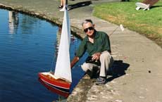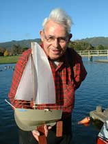 Dennis Lake of Auckland in New Zealand is a quiet, quite delightful Ancient Mariner RC sailor, a real `salt of the earth’ type of guy always willing to offer his services to fellow sailors in launching and retrieving of their own boats despite his own not-too-good health. One of three boats he sails is Argus, a lovely little schooner and he also sails a Roy Lake built Smeed Starlet called Tusi Tala which he immaculately maintains. He is one of our surviving four members of the Last of the Summer Winers windling group of five who used to sail at a private Sinton Road artificial lake in the grounds of a residence in Auckland.