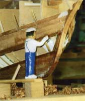 In memory of! No longer with us, hull shaper Benjamin Clobberchisel Snr who had his head flattened in an accident by a hammer wielded by model yacht shipyard owner, employer and expert craftsman (Accurate too!) Derek Nicholson of Kumeu, New Zealand. “He was chiselling in the wrong place at the wrong time” an upset Nicholson is reported to have said to the Coroner!