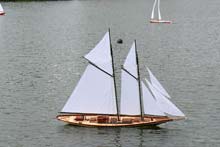 In the third and fourth photographs is Auckland Ancient Mariner windler, Derek Nicholson’s new schooner, the Fife, Cicely sailing at Onepoto. He built it after seeing South Carolina’s Andrew Charters model of the same boat a few years ago in Windling World.