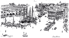 I worked in Bridgetown and the Careenage activity drew me back to my painting, and my sketching, and watercolours which tourists seemed to find of interest and some bought. The pen and ink drawing of mine (above) actually became a popular print sought by tourists in the years that I was with BOAC/British Airways. It shows the Francis Smith outside of the Mary M Lewis, the writer in his MGB sports car in the lower left corner of the drawing included just for posterity. That indeed is a very long time ago.