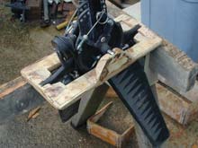 | The bottom of a previously built Mirage pedal drive well was recycled. The four notches hold the drive in place in the well built on this base. |