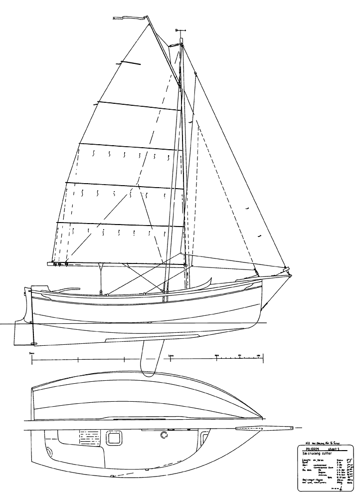 When considering the rig, I had some spars that I wanted to use which I have to admit was a consideration, but when I looked at the requirements of the boat I felt that the gaff cutter rig so successfully used on other boats that I’ve drawn had a lot going for it. The mast is relatively short and light so is easy to stand up and rig, the sail area is large but low down so gives good drive for its area, the combination of roller furling jib, a staysail (inner jib) that can be set or taken down as required and a highly efficient full battened mainsail means that there are quite a number of possible combinations of sail to choose from to preserve balance and stability in heavy weather.