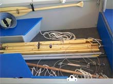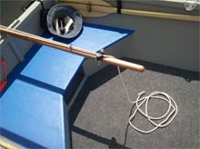 Stepped mast, daggerboard in place, stainless stays tightened. |