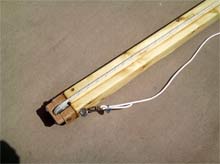The mast head with the halyard emerging over the pulley. The boom line is also shown. |
