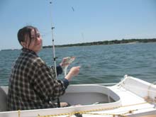 Slider’s greatest virtue, in my opinion, is her handiness. She tacks effortlessly, unlike many cats, which as a breed are notorious for being slow in stays. She has a modest amount of weather helm, so that if the steering line is released, she comes up into the wind and waits there, sails luffing, for as long as necessary. While she makes her best speed to windward with the sheets cracked slightly, she has a remarkable ability to pinch up and keep sailing more slowly, when necessary to clear a buoy or other obstruction.