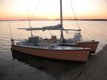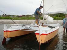 Slider seems to be a completely new kind of beach cruiser. So far as I know, Slider is one-of-a-kind. There are other 16 ft. cruising cats, but none of them are open boats with in-hull seating.