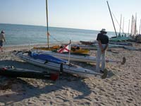 Gary reports that NatureCalls and NatureCalls2 arrived at CP3 at 7:52 this evening. When Gary informed them that the convenience store at Flamingo closed at 8, they made a bee line there for some "real food". They will spend the night and head for the finish tomorrow morning. They reported being overcome by a dirtdevil/waterspout today. They barely had time to release the halyard on the sail before it hit. Then they were showered by dust and debris. It was a close call but nothing broke.