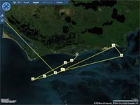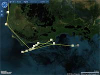 Gary says there was practically a traffic jamb today as JRock and Roo hit CP3 10 minutes apart. JRock had anchored off Cape Sable last night for a little sleep, only to be awakened by Roo sailing past this morning. JRock got busy and sailed the catamaran past Southern Skimmer to arrive at CP3 first. Both left with intentions of sailing around Florida Bay as the East wind would make the sail through really tough.