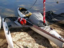| The tandem double Hobie Adventure Island prototype sailed by PenguinMan and OceanDiva. |