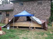 I finally put up a hodgepodge temporary shelter which Michalak likened to a temple to the weather gods!